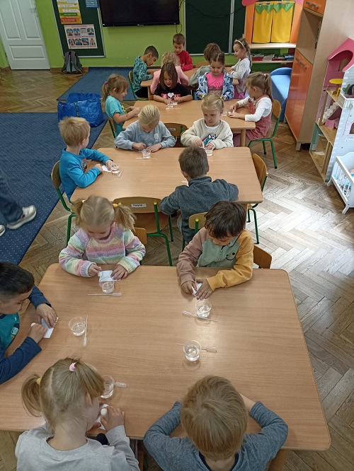 6 października  Starszaki uczestniczyły                                                           w warsztatach naukowych. Przedszkolaki zgłębiały tajemnice nauki przeprowadzając eksperymenty z wodą.